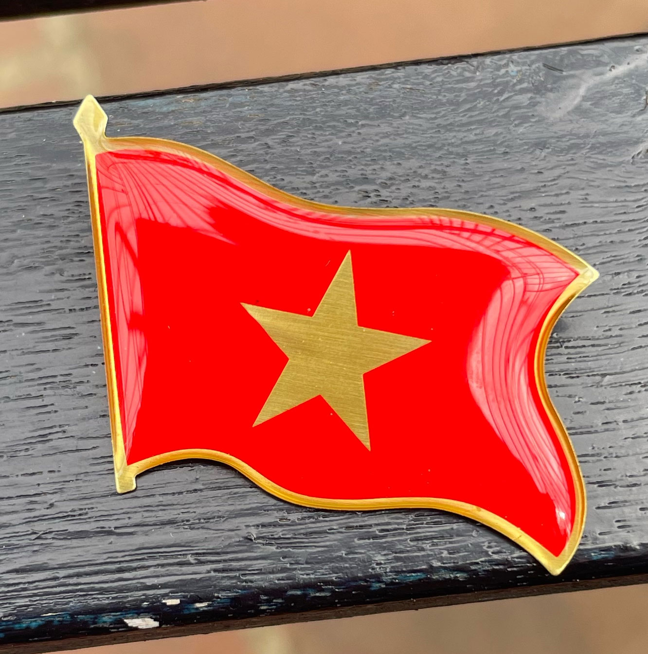 Sampler Pack includes: Red Enamel Vietnam Flag, Red Enamel Ho Chi Mih, Red Enamel Sickle and Hammer (3 for the price of 2!)
